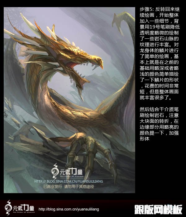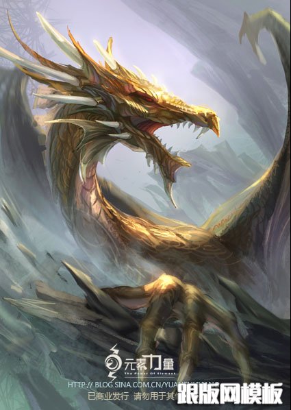 这次的主题是要求绘制一条金色的龙,A4尺寸比例。 在动笔绘制前最好先做一些准备工作,多收集一些主题相关参考素材,在速写本上大致的构思一下龙的动态和画面的布局安排。在心底有一定雏形的时候我们就可以进入初步的绘制阶段了。 最终效果1、先...