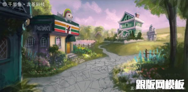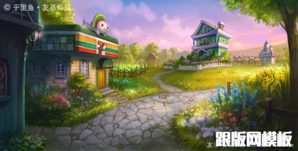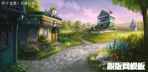PS鼠绘梦幻的绿色卡通小村庄