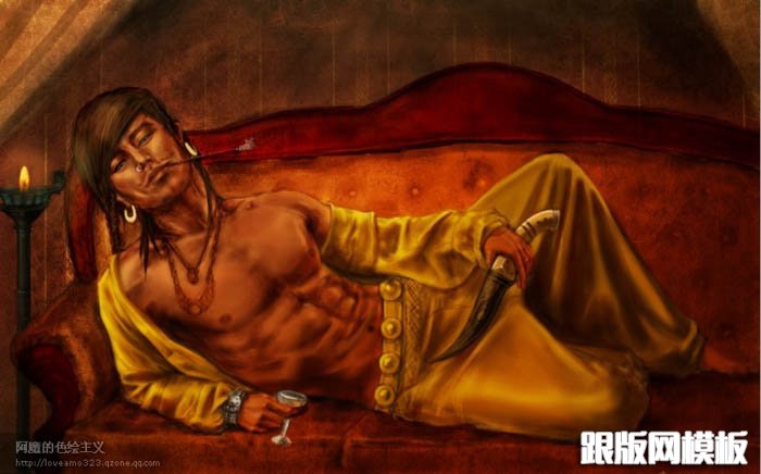 鼠绘人物最重要的就是把人物的个性刻画出来。如下面的教程为了刻画一幅小数民族男士独有气质,作者特意用酒杯,烟斗,小刀等等来表现人物的爱好,再用独特的表情来表现人物悠闲自得的生活,基本每一个细小的细节都是经过作者精心安排,这样出来的效果才有震撼力。