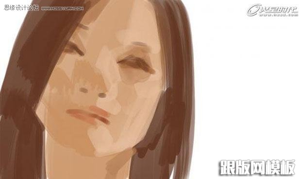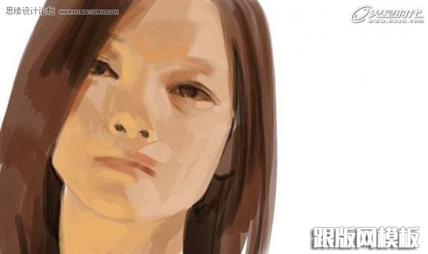 2、然后继续用大色块把脸部几个转折,光源和冷暖对比分出来,在这里我们可以开始理出结构关系了。