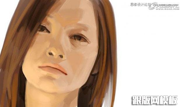 7、这时我们可以新建一个图层,柔化先前的凌乱笔触,同时进一步校准人物的眼神等细节。