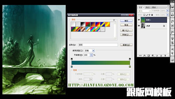 2、再建一层选叠加模式,添加一个大渐变,整个画面的基本色。这是JF最原先脑海里出现的色。