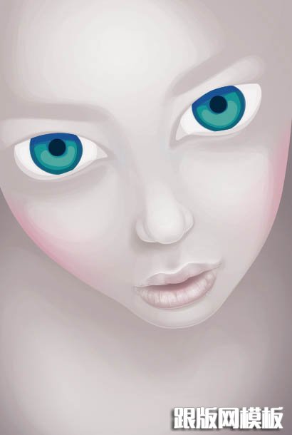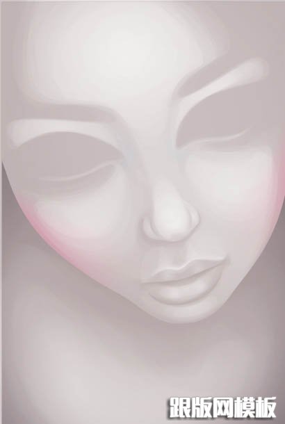 5、由于皮肤有各种各样的色调,因此我开始使用剪切蒙版添加混合效果,给脸颊填上红色,在眼窝处添加灰色以及再加亮一点胸部区域。