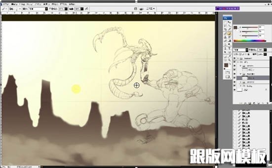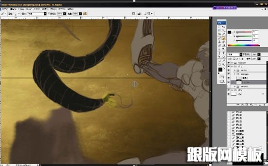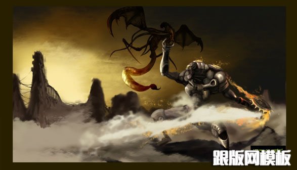 效果图有点小,其实怪兽及背景都有很多细节没有显示出来。鼠绘的时候可能会复杂很多。教程中作者重点介绍怪兽的鼠绘方法,包括从造型到实体制作,这些都需要较强的美术功底及想象力。 最终效果1、本作品是使用汉王创艺大师三代数位板产品完成,该产品在...