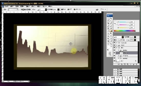 14、背景的整体效果,接下来要将山的明度降低,表现一些光影和细节就可以让其融进大环境中。