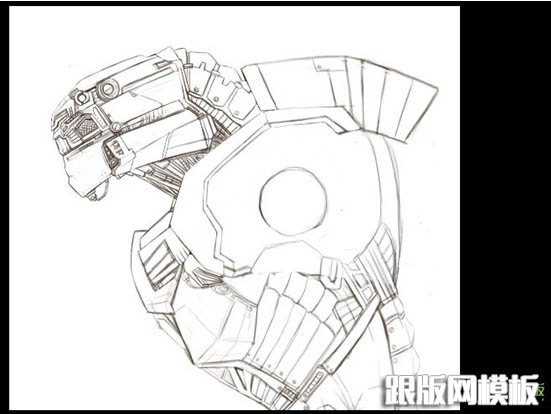 5、无论是何种创作,对于造型结构,细节的认识都可以通过人设来考量,对你的造型认识越多就越方便于你的创作。这个人物的设计尽管是机械可还是从人体结构本身寻找原型的,包裹着装甲脊柱构造,肋骨上附着的金属镶片,颈部裸露的脆弱管线,因为只有这样才是符合机械+人的创作概念的,否则一味的机械化只会让造型失去真实性。