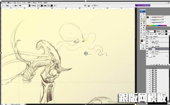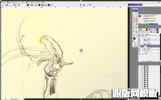 可以看到与人设相比我在这个造型上又做了改动,为它增加了类似的装甲,使之感觉更厚重,为主角搭配一个反面的异型,这个地方也不可草草了事,往往很多次的修改是得到一个较好造型的关键。