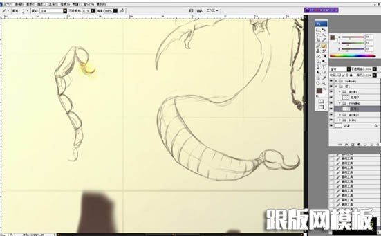 效果图有点小,其实怪兽及背景都有很多细节没有显示出来。鼠绘的时候可能会复杂很多。教程中作者重点介绍怪兽的鼠绘方法,包括从造型到实体制作,这些都需要较强的美术功底及想象力。