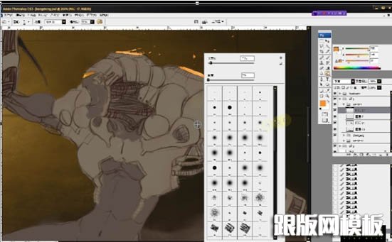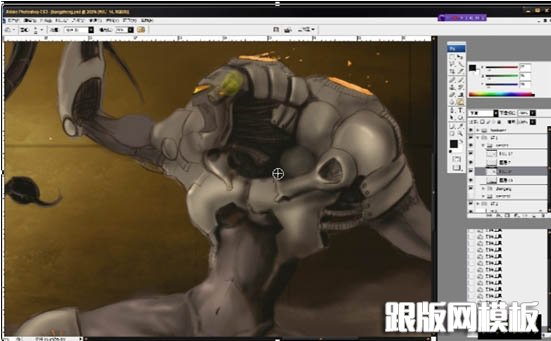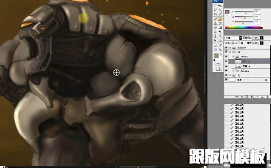 16、给人物各处增加细节,这里说明一些,所谓的这些细节除去一些做数字绘景的朋友会用拼贴或材质的方法制作几近真实的肌理,一般情况下,我们还是要靠自己去绘制细节的,所以,平时的观察就变得无比重要了,当然,要观察机械细节绝对不是去对着汽车轮胎看几个小时。