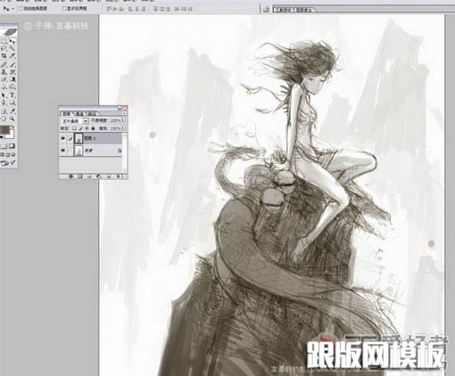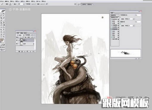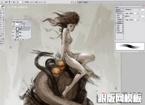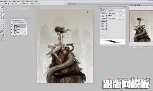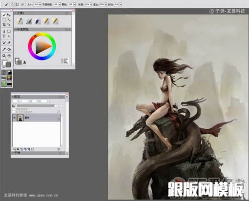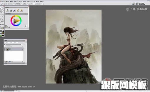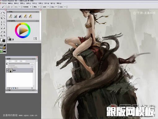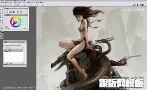 9、当整体画的差不多的时候把图层全部合并,保存。然后在Painter里打开,开始用Painter绘画细节。为了方便大家观看,我用的是中文版的Painter。
