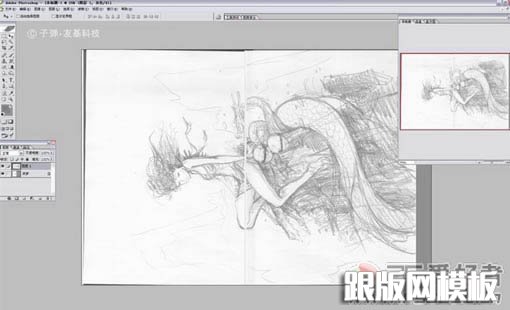 1、画的图有点大。扫描到电脑里要拼一下,画面有点灰,我用Photoshop来调整。