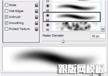 没到5分钟,我就决定在画面上建立一个怎么样作品。开始建立一个灰色背景,选择菱形的笔尖,流量调节成100%。为了试验笔刷,调节成25—40%比较柔和一些的画笔,对于任何绘画作品,我回尽量尝试新的画笔,直到满意为止。(如图1、图2、图3)。