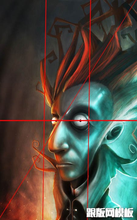 作为最后一步,大家可以看看这幅画的布局构成。即使是世界上最好的艺术作品,也会有不足,没有完美的作品。布局的不同对画面的影响是完全不同的。对于这件作品,我用的是一个正方形的构图,重点是眼睛部分作为所有画面的焦点。利用头发的不规则形状使整个画面更有激情,打破这种方形的结构。