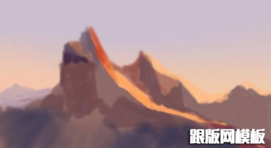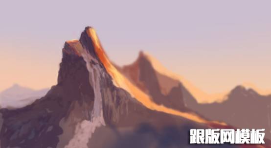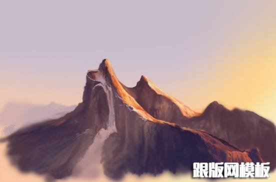 2、铺就一个大致的颜色造型,分出基本的冷暖明暗。注意光影随山势起伏的变化。