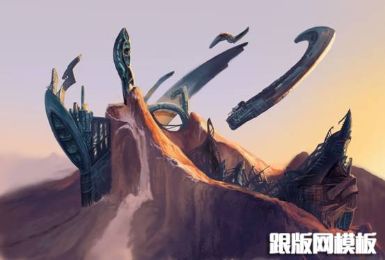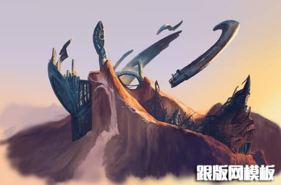13、给这个悬浮在空中的像残骸一样的环状建筑增加结构,将光影的效果做更进一步的强化。