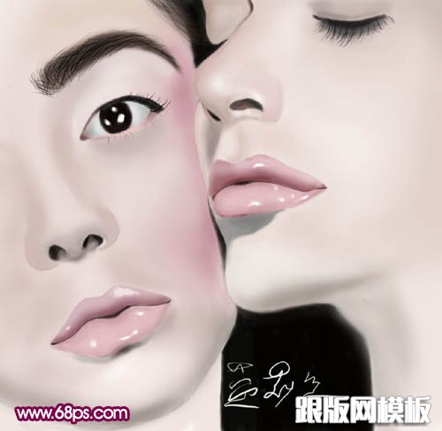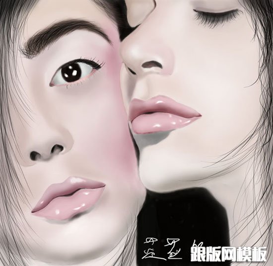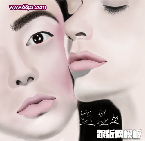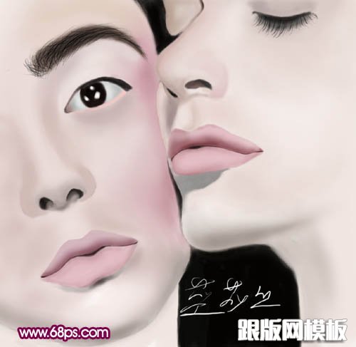 本教程介绍人物头像的鼠绘方法。画面由一对情侣头像构成。教程开始之前我们需要构思好人物的表情及画面的布局。要用最佳的视觉效果来变现人物内心的情感。作者刻画的非常不错。