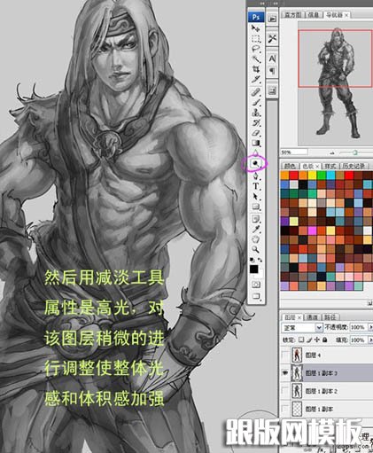 6、然后用减淡工具,范围设置为“高光”,对该层稍微进行调整,是整体光感和体积感加强。