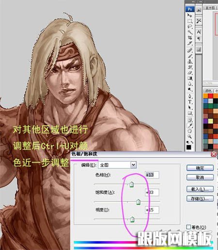 10、对其它区域也进行颜色调整。调好后按Ctrl + U 对颜色进一步调整。
