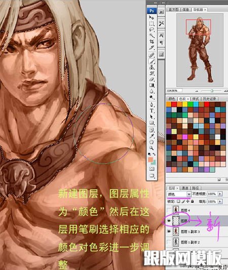 11、新建图层,图层混合模式改为“颜色”,然后在这层用笔刷选择相应的颜色对色彩进一步调整。