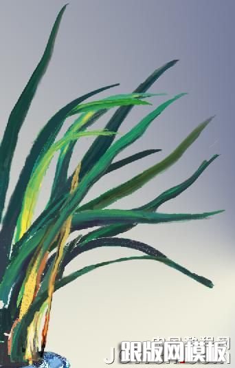 层次多,立体感强,色彩变化大的物体就应该分图层,相同色系一个层。盆栽的画法相同,过程如下图。