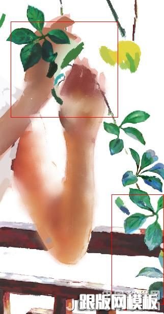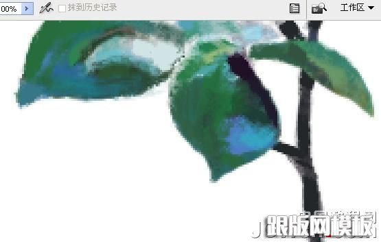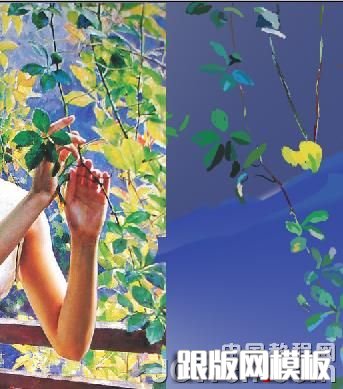 13、在刻画细节上,不是所有地方都需要深入刻画。如果都一样会显得没有层次感,就向远处的风景需要模糊以便突出近景。 如图,可以看到一堆树叶中有一枝非常突出,刻画详细,我们把它挑出来画。