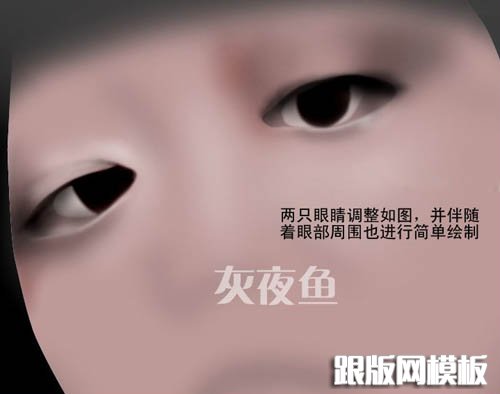 6、两只眼睛调整如图,并伴随着眼部周围也进行简单绘制。