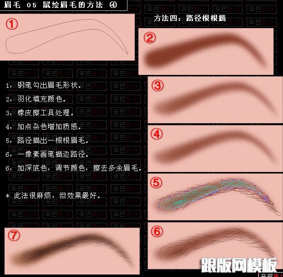 5、用钢笔工具勾出一根根眉毛并用1像素画笔描边路径。