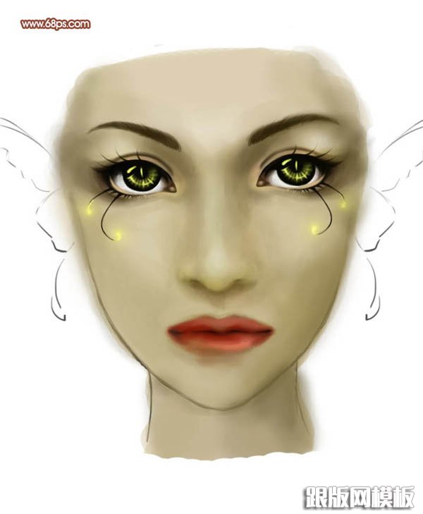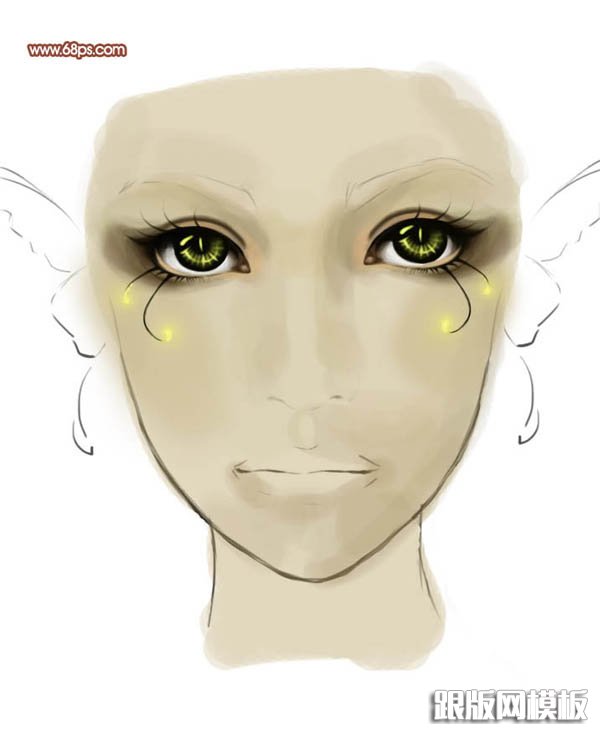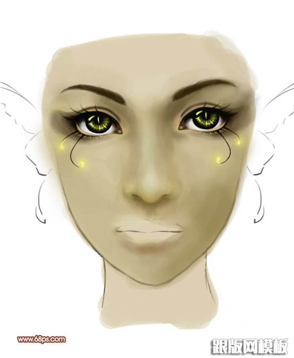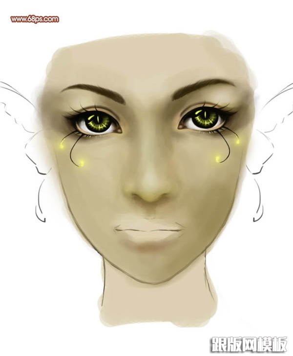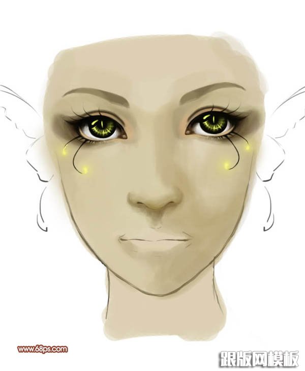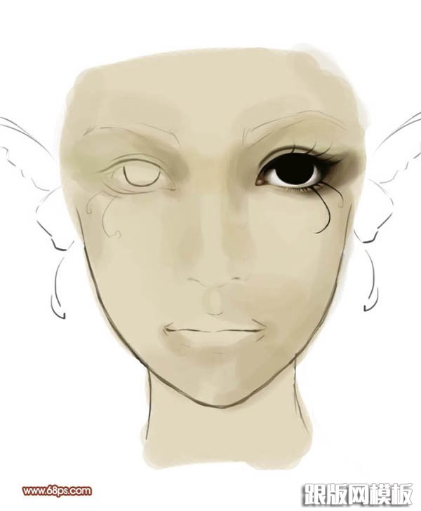 8、这时候大致的人样已经出来了。皮肤不衔接处就用涂抹慢慢磨。画上眼皮的亮色(涂点白色用减淡扫)。