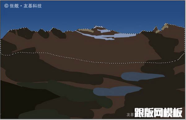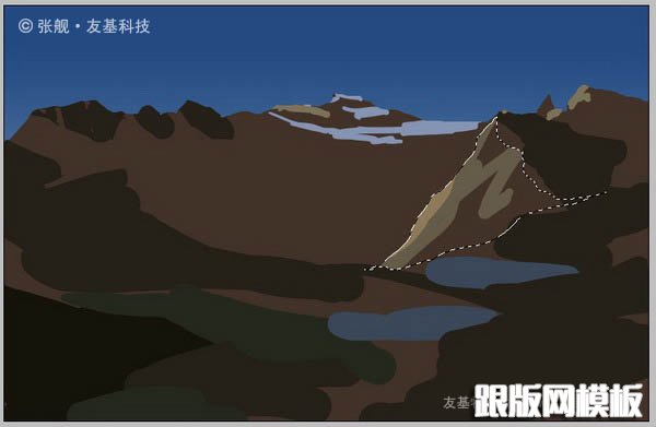 2、新建图层刻画山体。PS的套索工具其实是画山的好帮手,可以轻松获得随机而肯定的山体边缘。