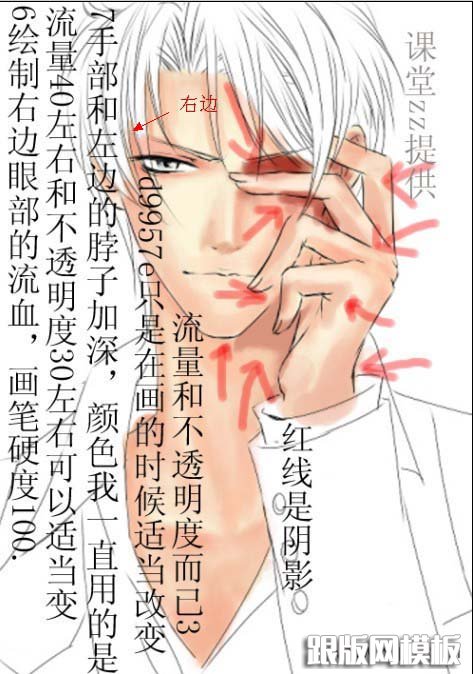 3-5、画阴影的时候画笔透明度大概为20%左右,流量为30。绘制不同阴影的时候不透明度和流量需要适当改变。