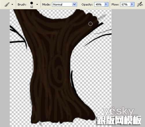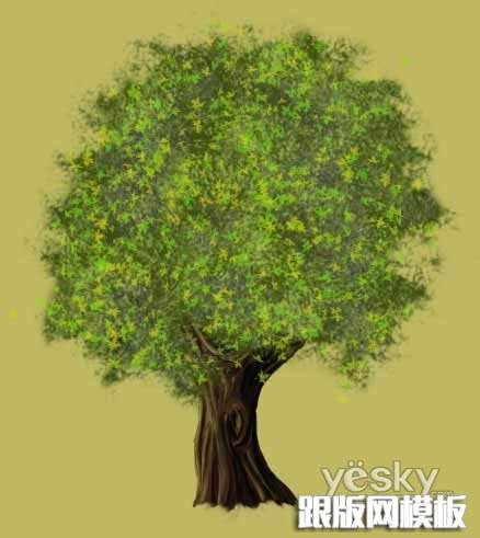 这篇教程详细介绍卡通大树的鼠绘方法。大致可以分成两个部分来绘制,树干和树冠部分。树干部分的绘制相对容易一些,涂一些简单的明暗效果即可。树冠部分制作比较繁琐,用到的笔刷也较多。需要细心一点。