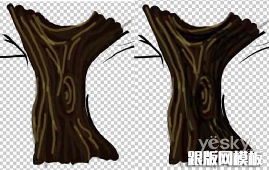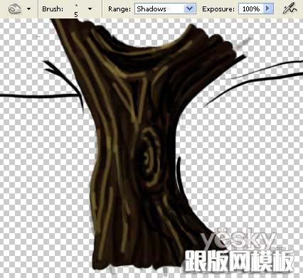 5、用咖啡色描绘,表现树干的亮部和暗部。