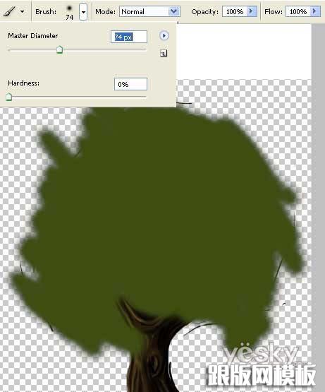 8、创建新的图层,用大尺寸的绿色画笔涂抹出树冠的形状。
