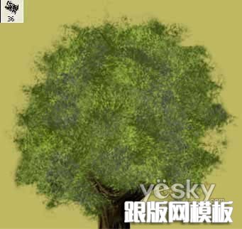 9、选择树叶效果的笔刷描绘树冠,制造丰富的树叶纹理效果。