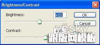 13、选择菜单:图像 > 调整 > 亮度/对比度,调节画面亮度和对比度,设置如下。