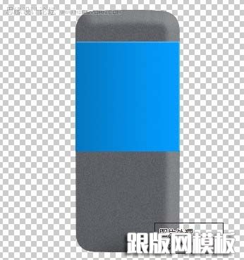 5、下面要做按键了,新建一层,拉出如下图的矩形,再从右上角到左下角拉出个渐变,添加斜面浮雕效果,再分成两个;如下图效果;