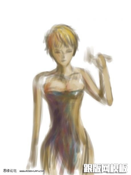 本教程过程图及介绍步骤有点少,对于初学者来说可能有点难度。不过鼠绘是非常讲究细节的,绘制的时候一定要有耐心,可以参考作者的效果慢慢去绘制。 最终效果 1、先从整体出发,用色块把人物的姿势大概的表现出来,用黑白灰体现出明暗关系。这个过程需...