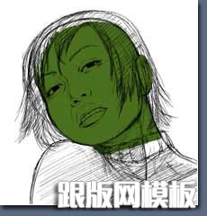 3、然后,新建一个图层,把其模式改为multiply(正片叠底),在把脸部区域涂上深绿色。为什么要涂深绿色而不涂皮肤色?因为深绿色可以很明显看出没涂到,镂空白色的地方,而皮肤色太接近白色,不易发现。(老外的细心由此可见)