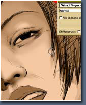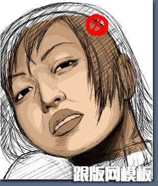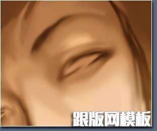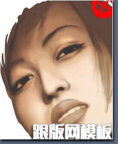 6、选取稍暗的皮肤色,在刚才的脸部图层继续绘制出阴影面。