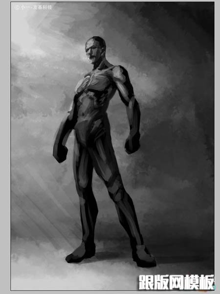本教程鼠绘需要很强的美术功底,人物衣服及盔甲的细节相当多,而且颜色也比较多,处理起来不是件容易的事情。练习的时候一定要有耐心,按照作者的提示慢慢去绘制。 最终效果1、第一步是将人物的具体比例和初始姿势决定下来,我的方法是先用黑色画出人物...
