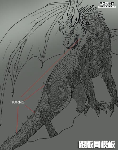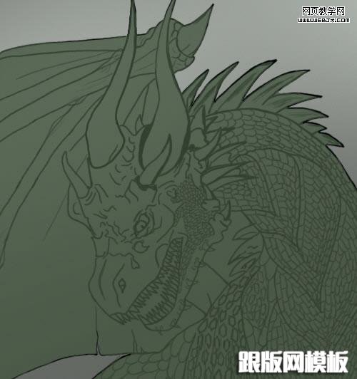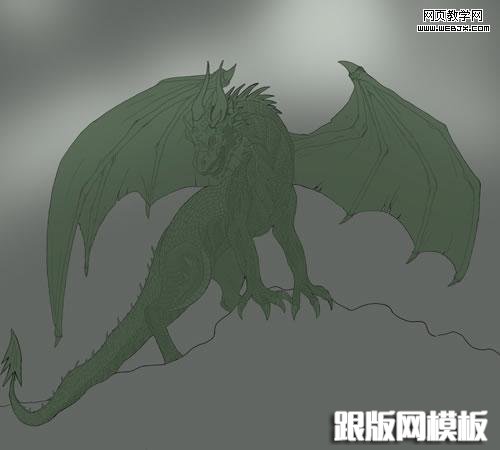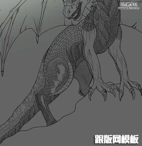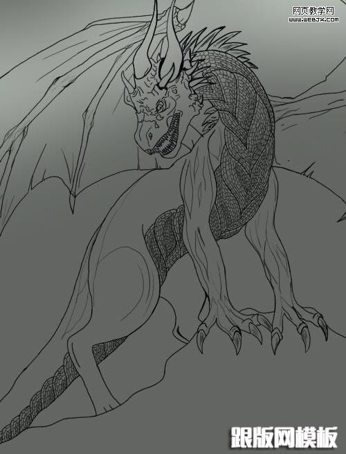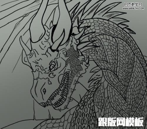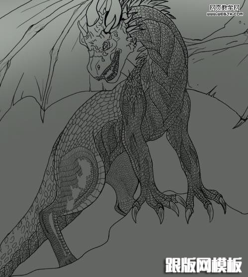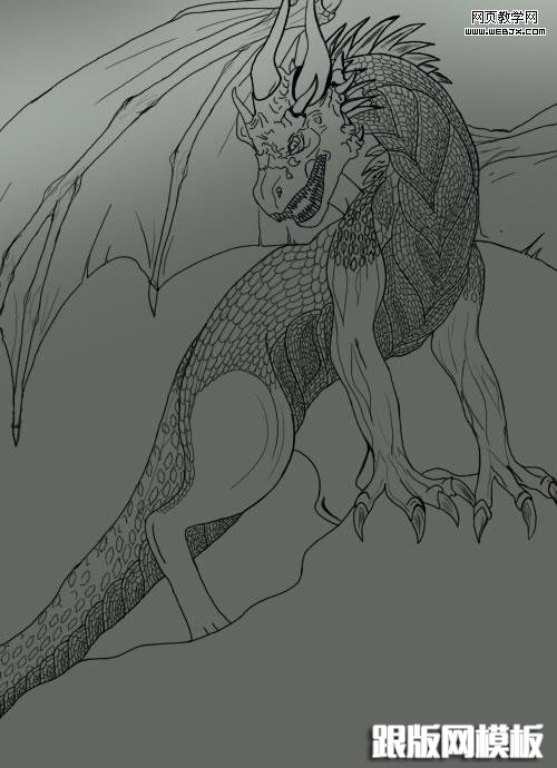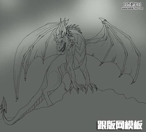 3、然后创建一个新图层,用画笔绘制一个素描龙,这个过程非常复杂的,在这里我大概用了1个小时的时间。