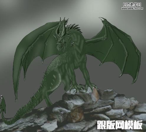 7、然后我们在巨龙和背景层中间添加一个图层,我们将绘制一个背景,为了绘制背景的时候能看到巨龙,我们把龙的图层不透明度调整到75%,然后绘制背景。