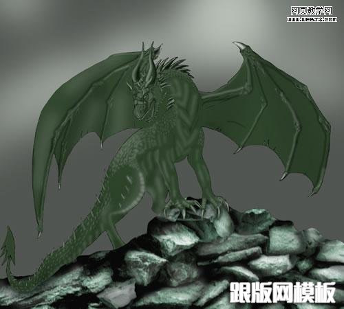 9、然后我们找到一堆岩石的素材,放到巨龙的脚下。