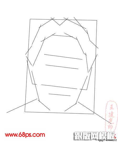 6、脸部皱纹的处理,这个细节需要一定的耐心,不能操之过急,要注意的是,皱纹并非就是几条线哦,同样有明暗关系的,如下图: