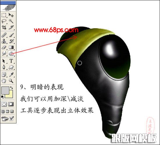 9、明暗的表现,我们可以用加深/减淡工具逐步表现出立体效果。