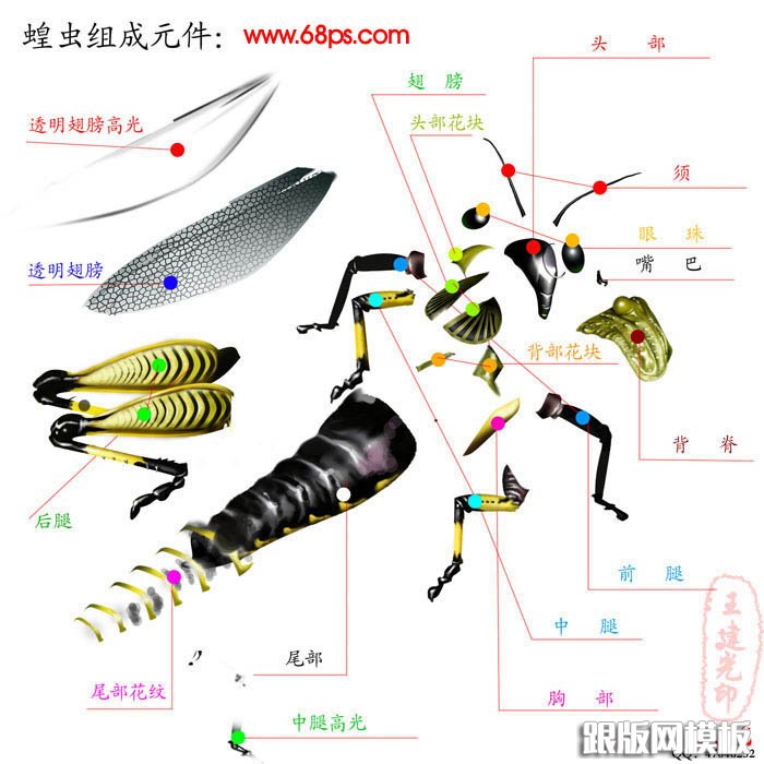 蝗虫器官拆分图: