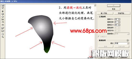 2、选择菜单:滤镜 > 液化,对头部进行液化处理,画笔大小根据自己的需要来设置。