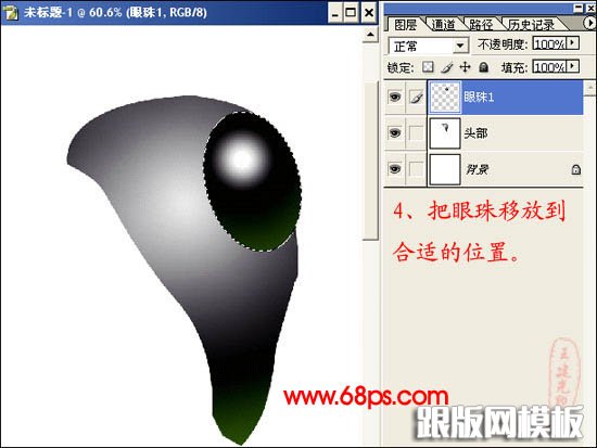 4、把眼珠移到合适的位置,如下图。