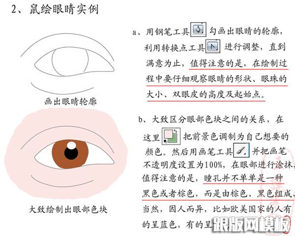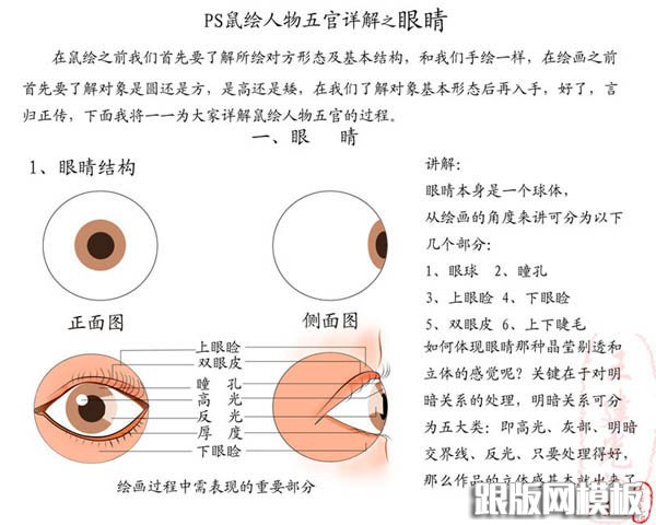 在鼠绘之前我们首先要了解所绘对方形态及基本结构,和我们手绘一样,在绘画之前首先要了解对象是圆还是方,是高还是矮,在我们了解对象基本形态后再入手,好了言归正传,下面我们一一为大家详解眼睛的鼠绘过程。 最终效果1、眼睛的构造: 眼睛本身...