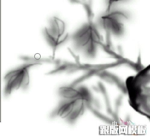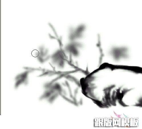 三、建立新层,用喷枪工具和涂抹工具画出枝条。